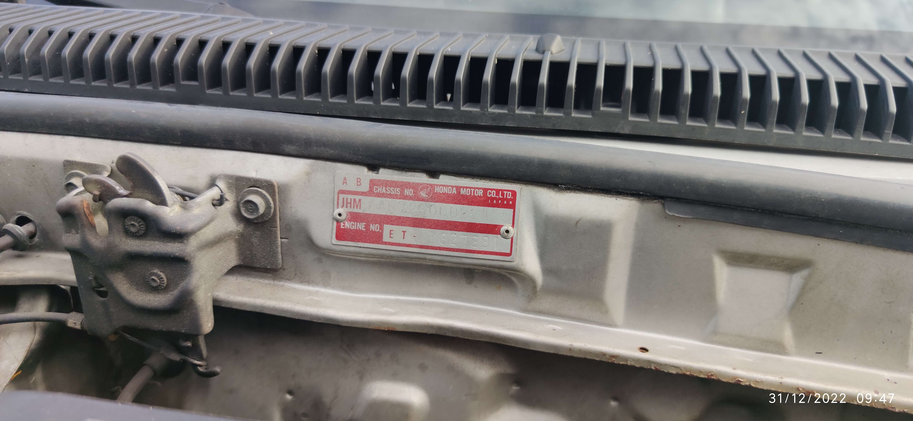 | VIN number on the firewall |