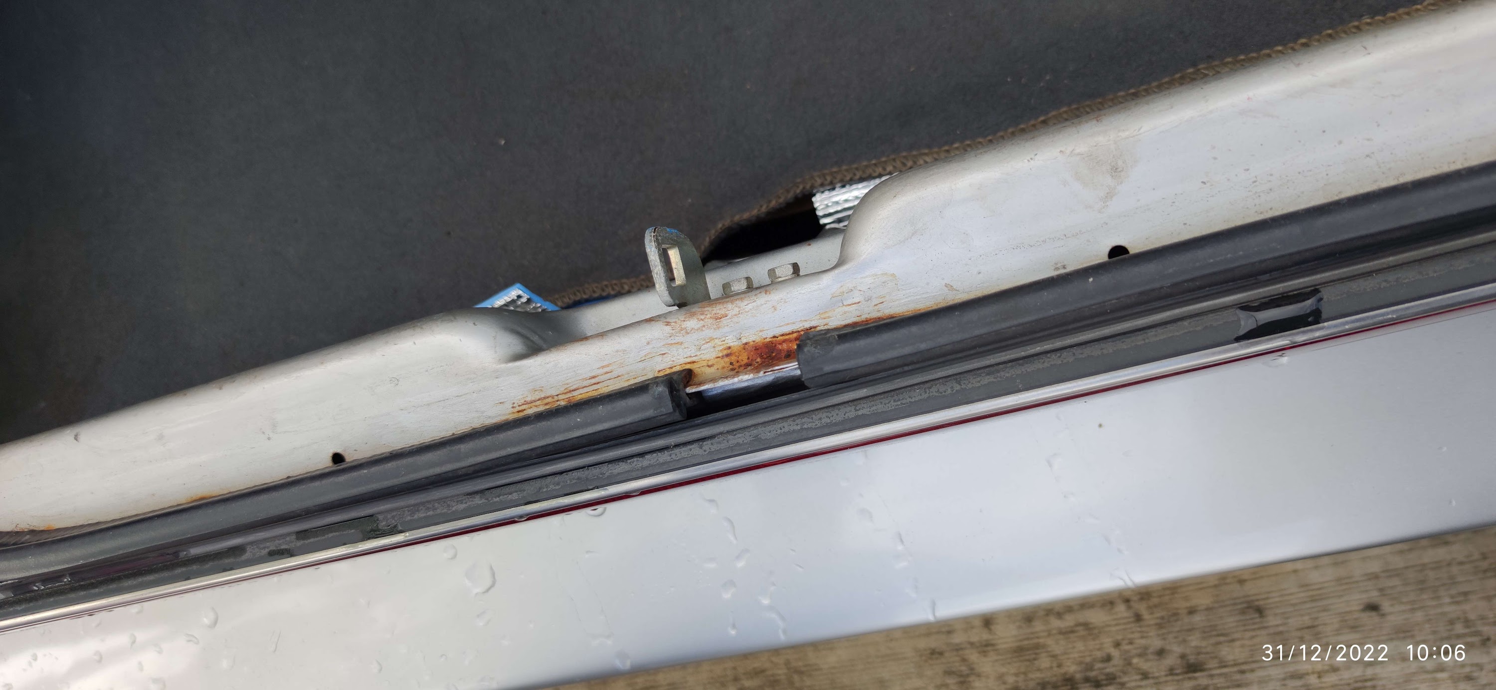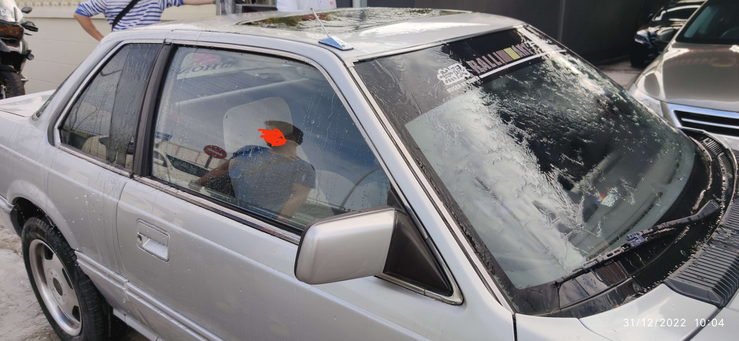 | Spraying the car with a hose to check for sunroof leaks (Yes, it has a sunroof) |