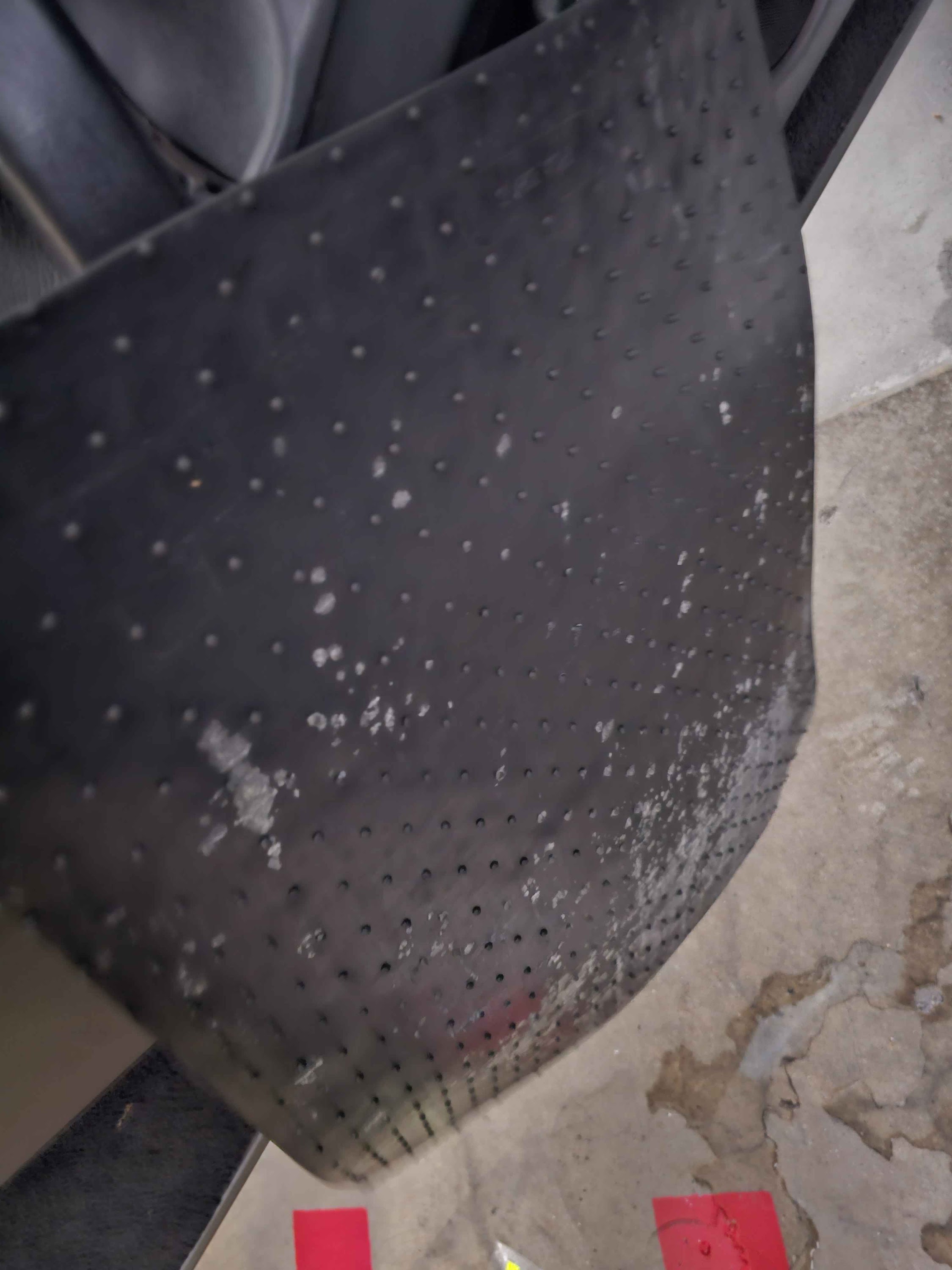Vaccuuming my interior as there was an abundance of leaves and dust. I flip the mats over, and…