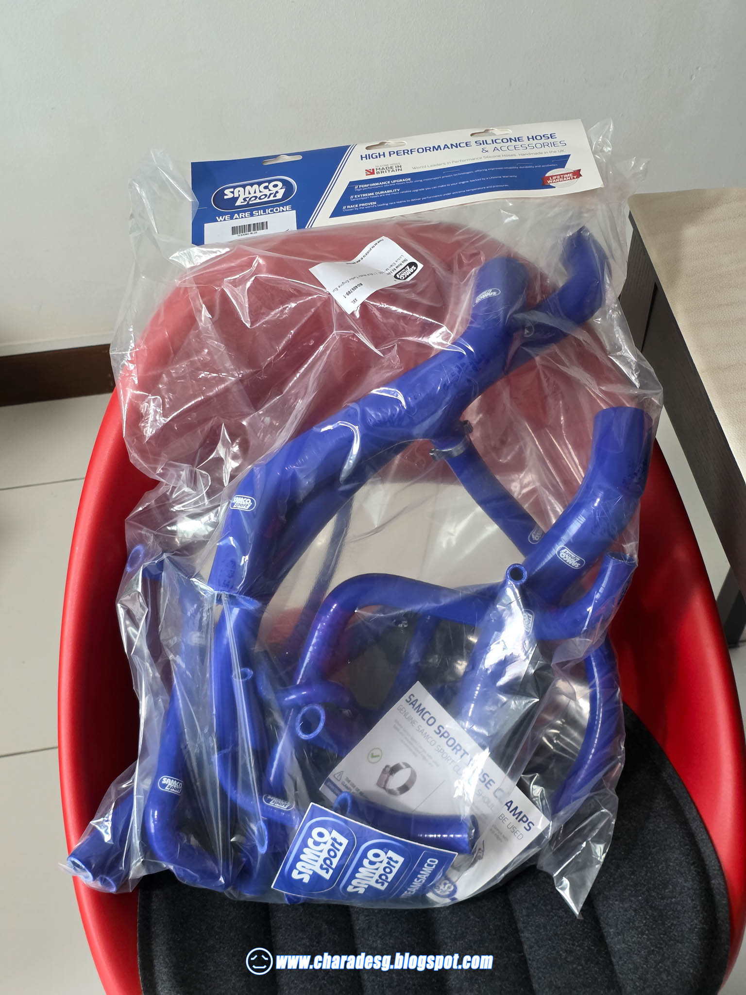 Around two months later from initially ordering (because these are made-to-order and are unavailable as stock), the replacement Samco cooling hoses for the Elan have arrived.