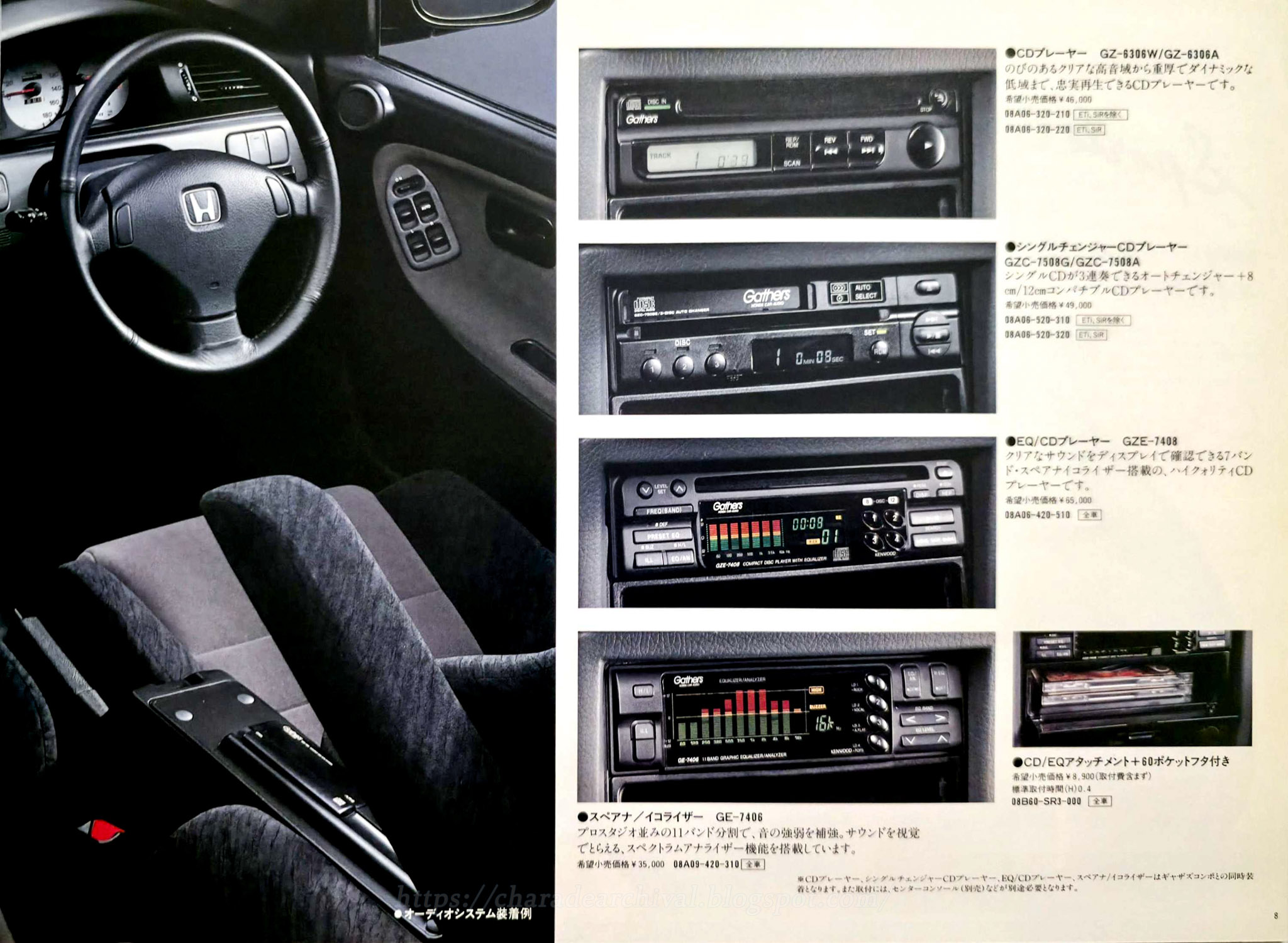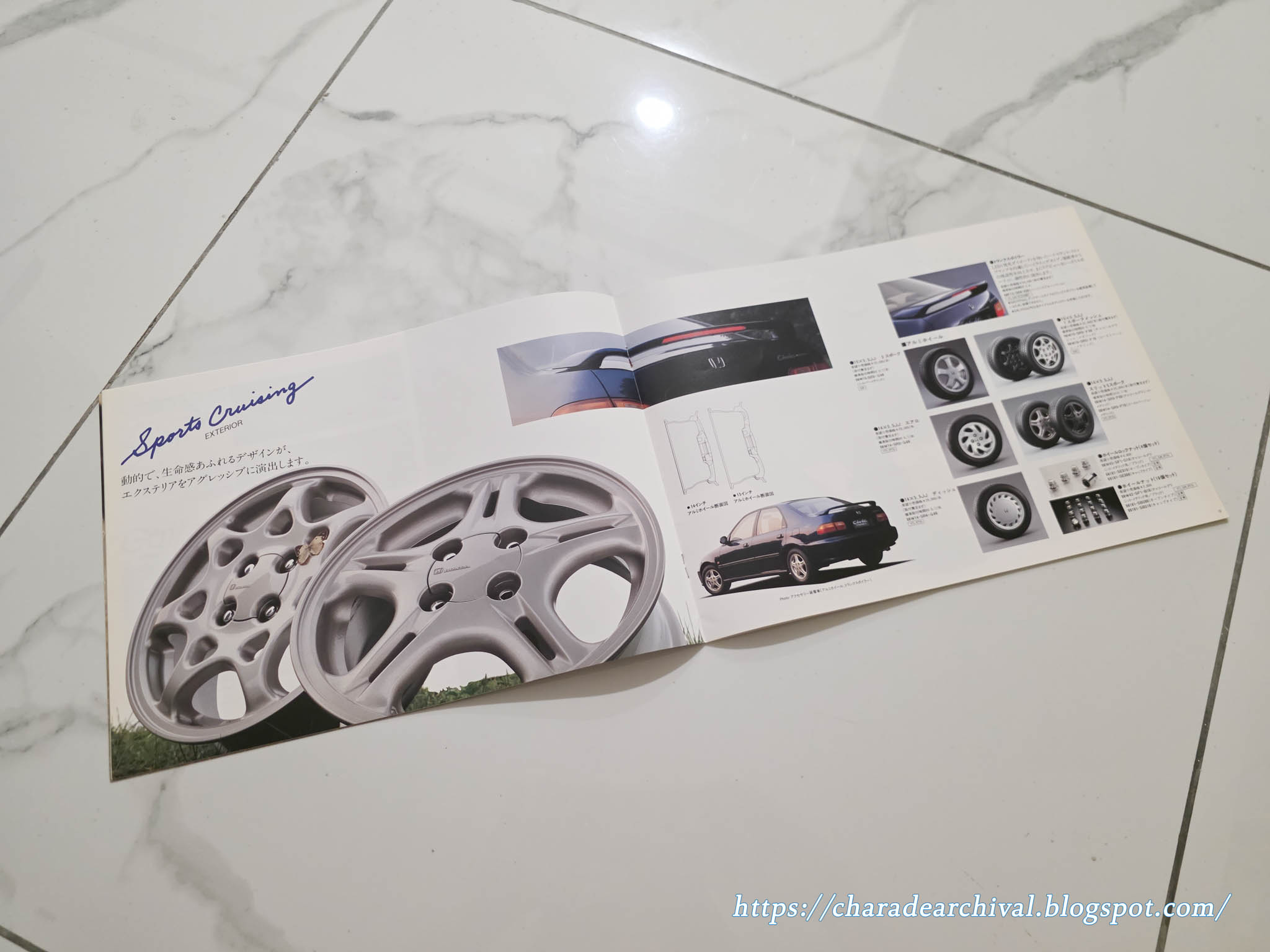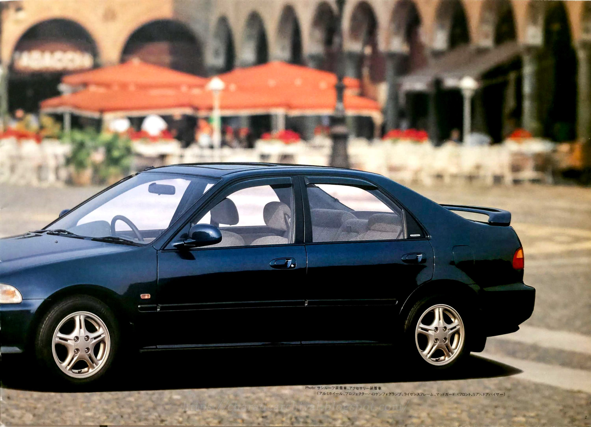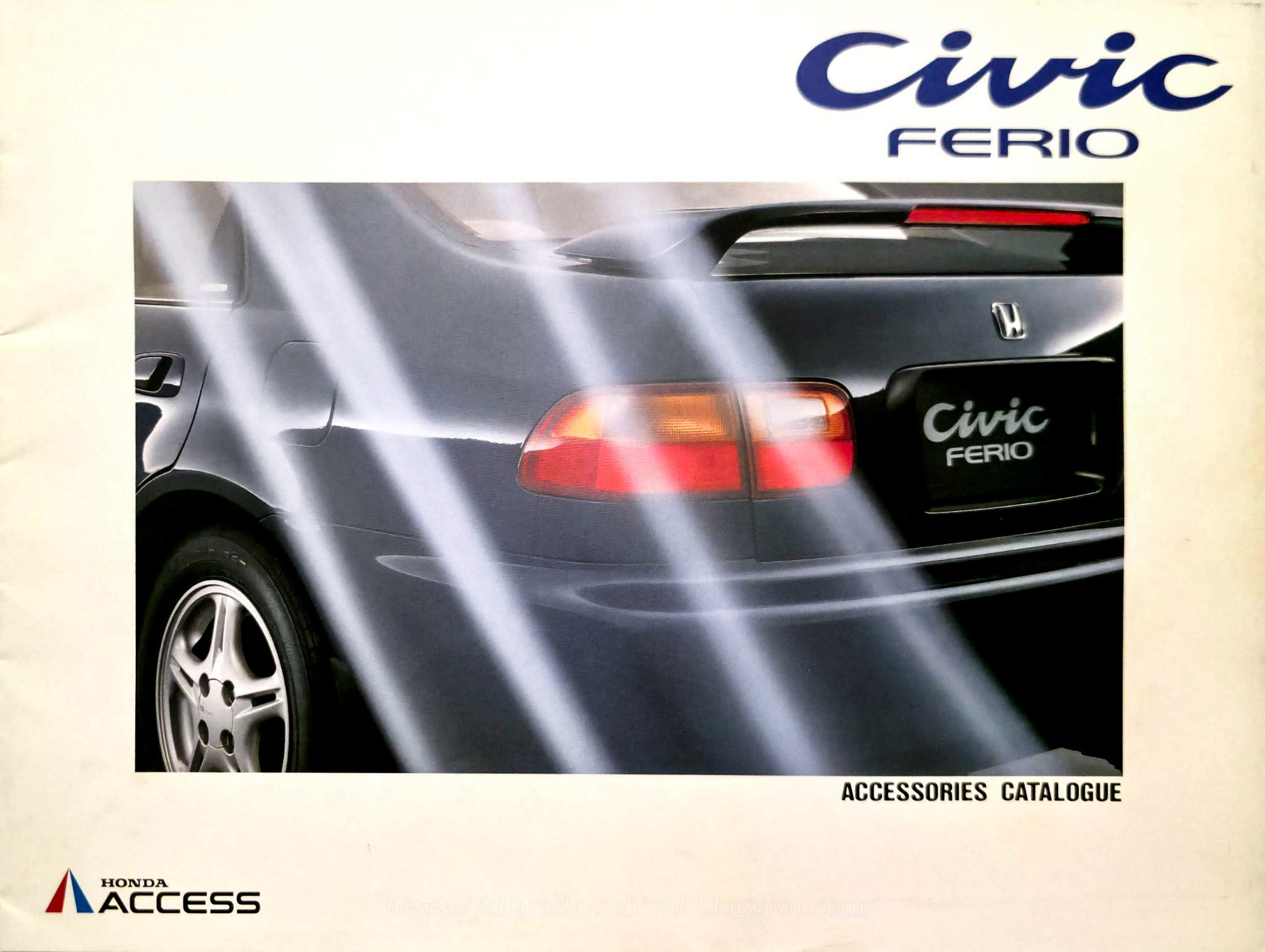 I believe this is the only Honda Access catalogue for the pre-facelift Civic Ferio, here they are showcasing a non SiR EG9 model, with optional sunroof. The specs listed are the aluminum 14″ wheels, projector halogen fog lamps, license frame, mudguards (front and rear) and door visors.
