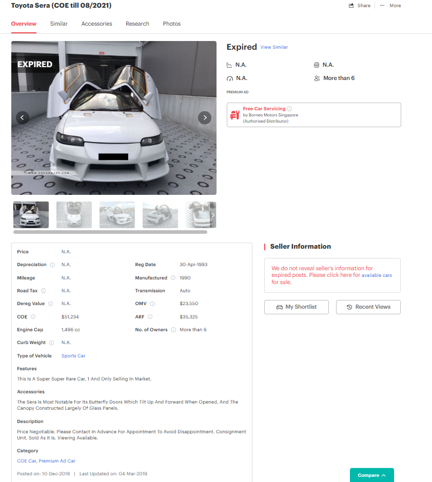 | Listing from 2019. Image credit: SGCarMart |