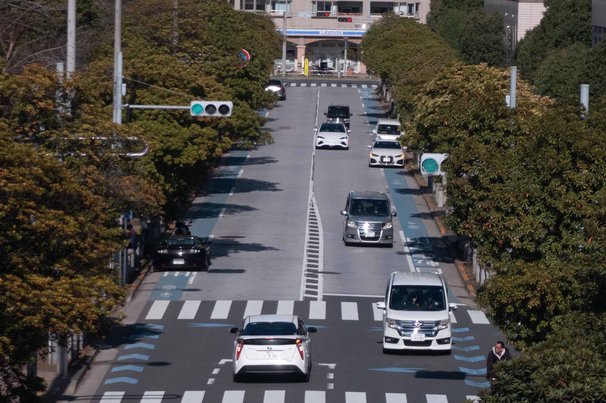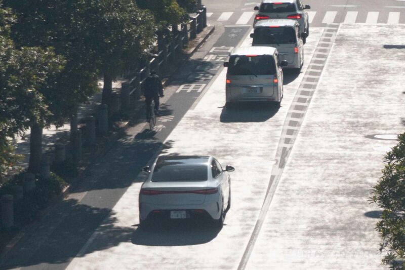 Overviewing the stretch between the beach and malls is a walkable bridge, fully displaying the road beneath it. I have almost no knowledge of the car-spotting places in Japan, but..