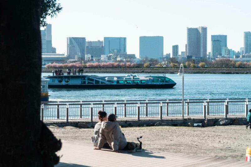 At this time of winter transitioning to spring, cherry blossoms are perhaps around a month later for most of the normal breeds to bloom. There are some that bloom early, though not common to find. Odaiba just so happens to have some that were blooming on this day.